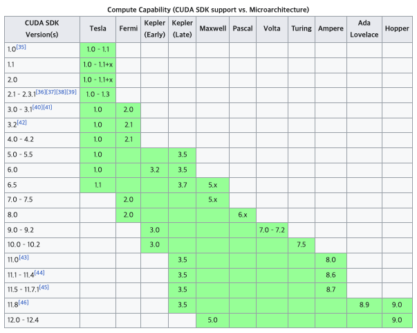 Compute Capability: https://en.wikipedia.org/wiki/CUDA#GPUs_supported