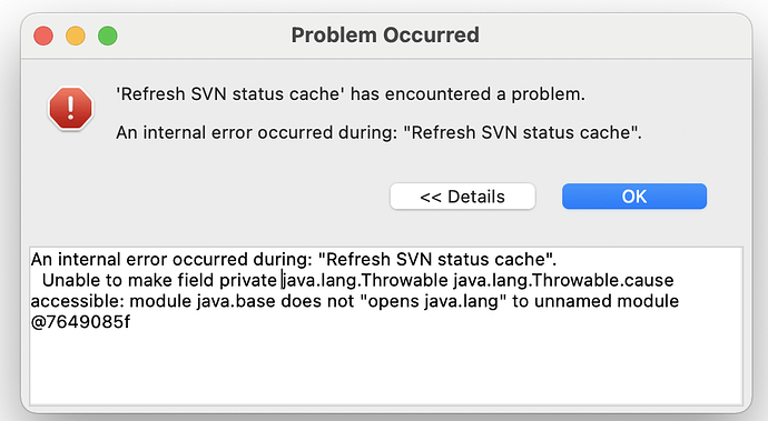 An internal error occurred during: "Refresh SVN status cache".